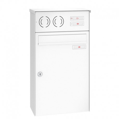 BASIC / EXCLUSIVE opbouw postkastenunit van Galfan-staal met bekleding, softclose en waterkerende RSK- briefkleppen als optie, RSA2 belsysteem als optie, vlakliggende houders onder de briefklep, conform Postwet.